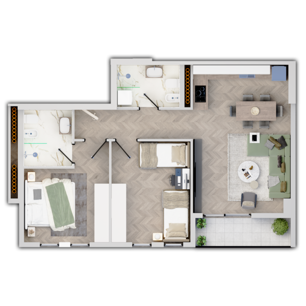 Apartament 2+1 për shitje në projektin Univers City. I organizuar nga dy dhoma gjumi, një ambient dite për banim dhe ndenje si dhe dy tualete. Ofron ambient shumë komod për një jetesë të mirë dhe të rehatshme. Apartamenti është me pamje nga brenda Godinës.